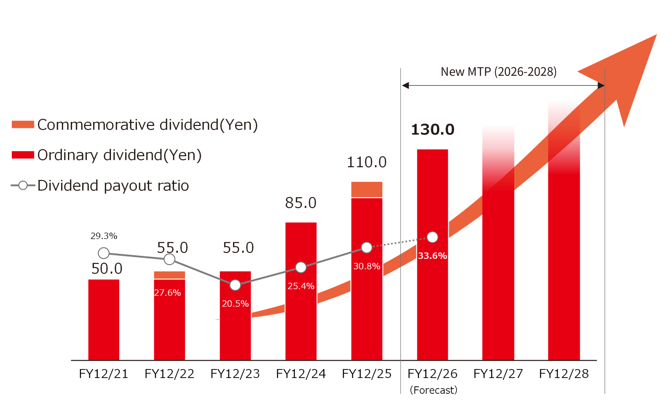 For FY12/26, the annual dividend is planned to be ¥130 per share (+¥20 YoY).(Interim dividend: ¥65; year-end dividend: ¥65)